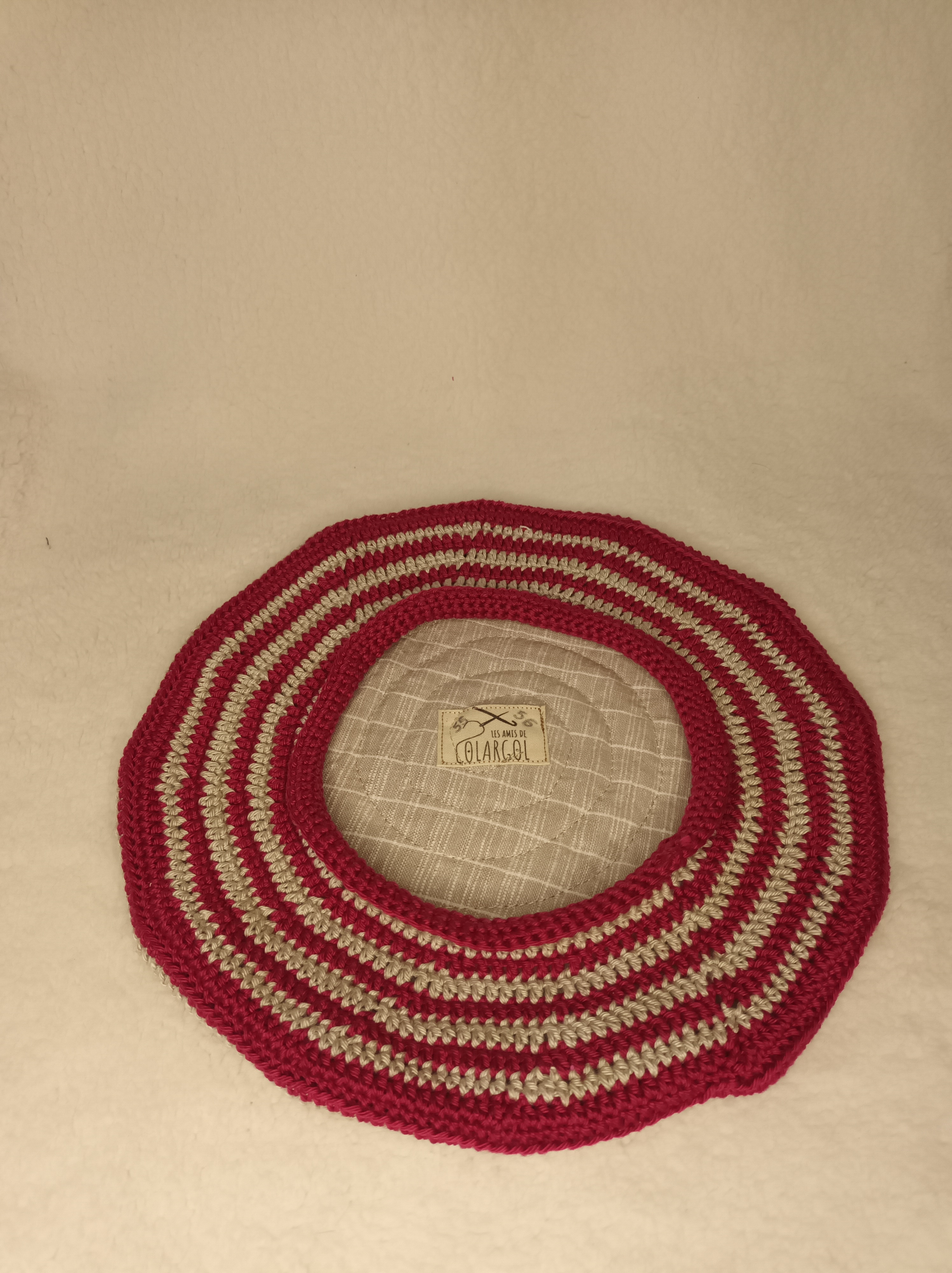 Composition: coton crocheté et fond renforcé par un disque de tissu coton pour donner de la tenue Taille: 56