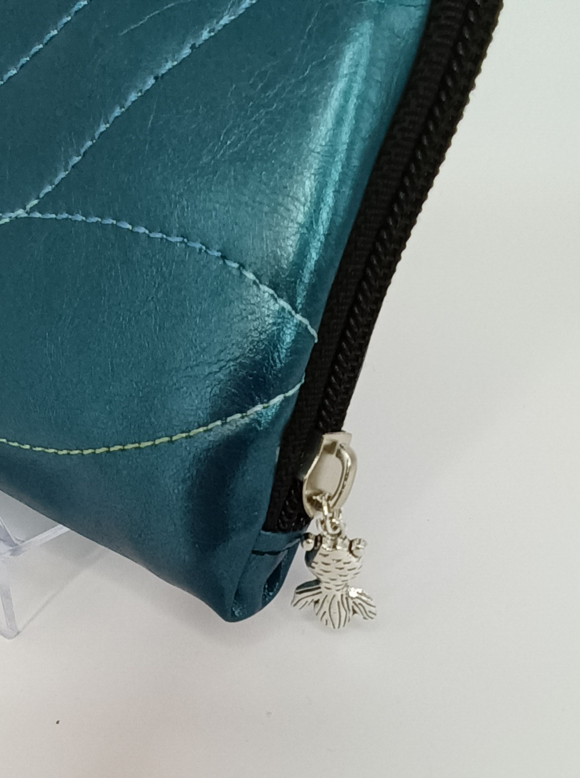 Extérieur: PVC bleu. Glissière et curseur zip noir. ZIP: glissière noire, curseur poisson argent.