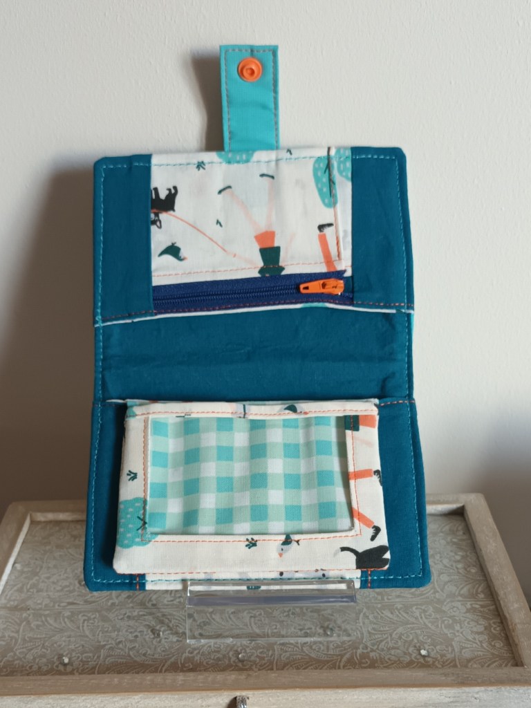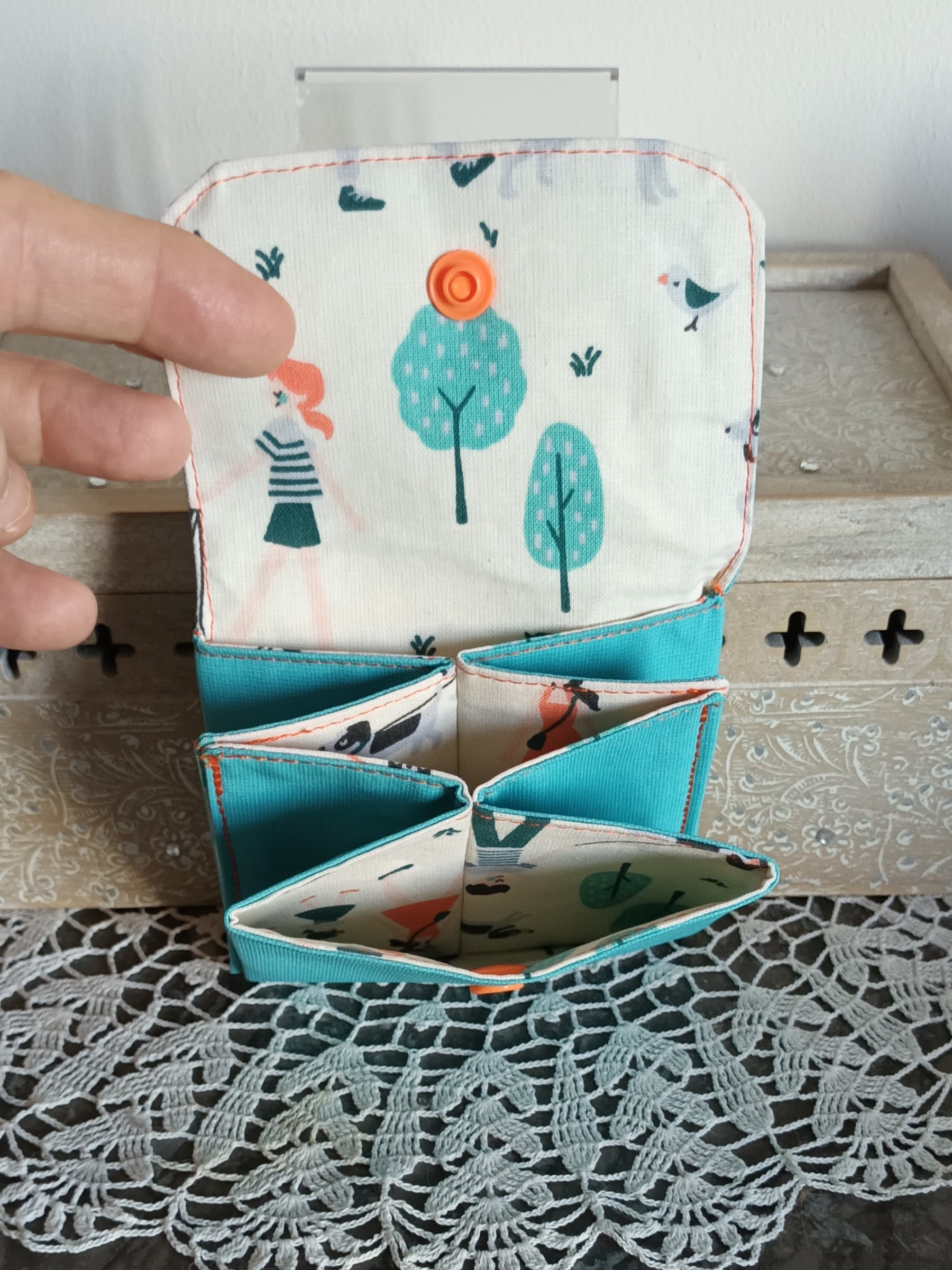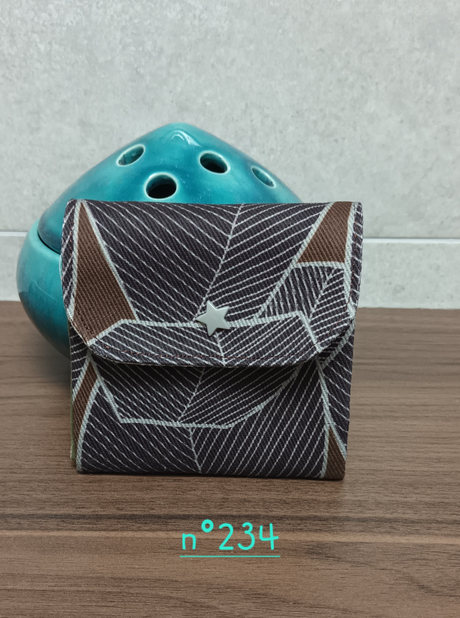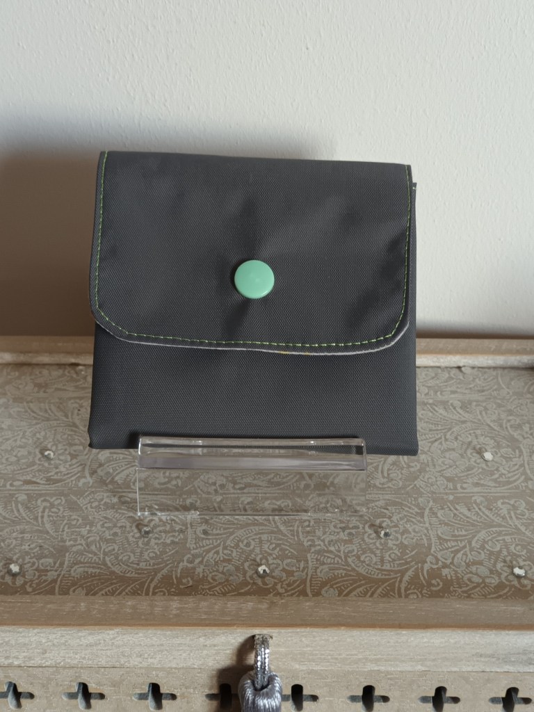 Des porte-monnaies simples, pratiques, petits, à glisser partout. 10 cm de haut par 10 cm de large, il se ferme par une pression et a trois compartiments à l’intérieur (monnaie, billets, cartes). J’aurai pu le nommer le 10×10 car en plus, il ne coûte que 10 €!
