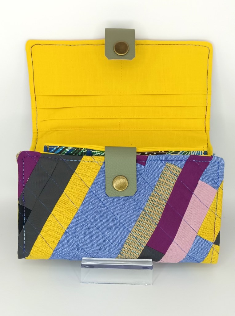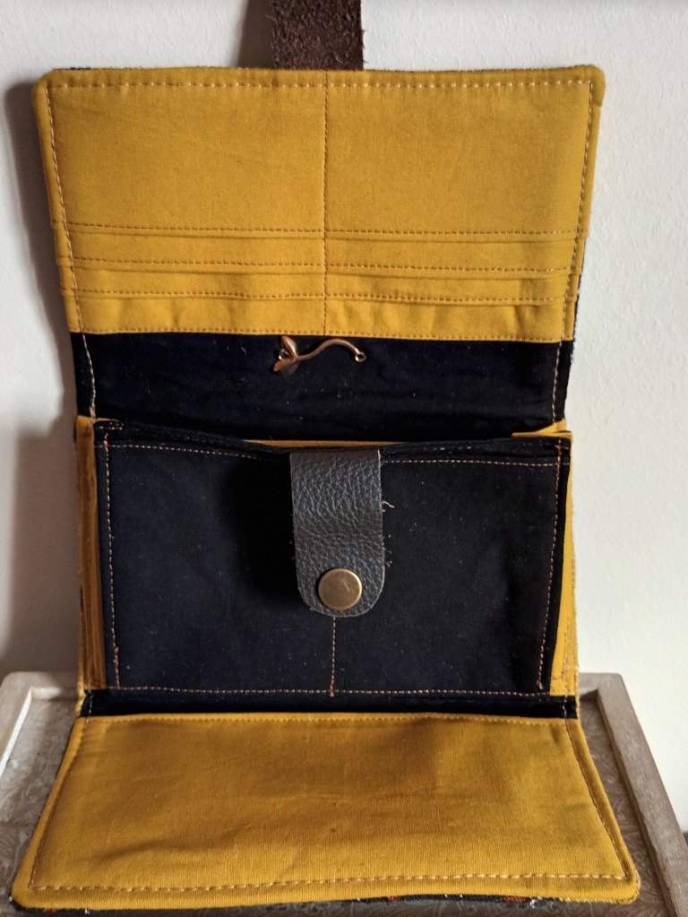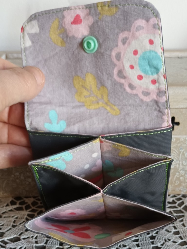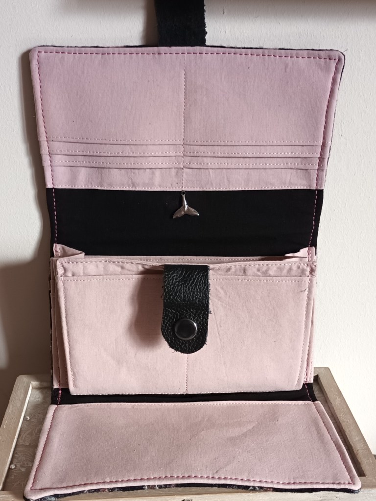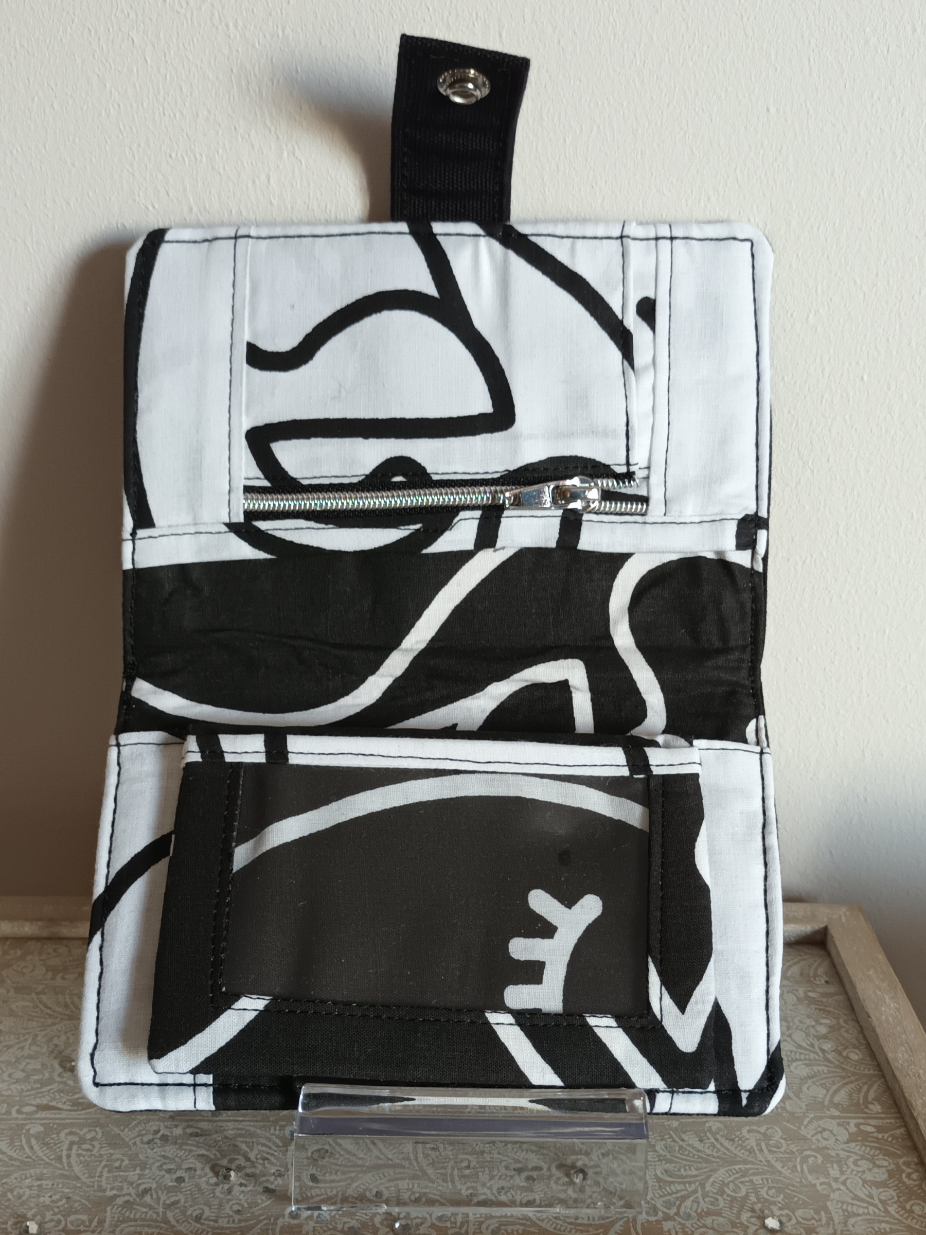 Des porte-monnaies simples, pratiques, petits, à glisser partout. 10 cm de haut par 10 cm de large, il se ferme par une pression et a trois compartiments à l’intérieur (monnaie, billets, cartes). J’aurai pu le nommer le 10×10 car en plus, il ne coûte que 10 €!