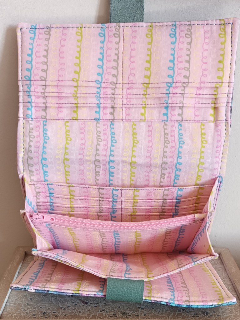Les pochettes plastifiées y accueilleront carte d’identité, permis de conduire. Une pochette zippée pour la monnaie, de quoi glisser quelques billets, cartes divers et hopla, l’affaire est dans le sac!