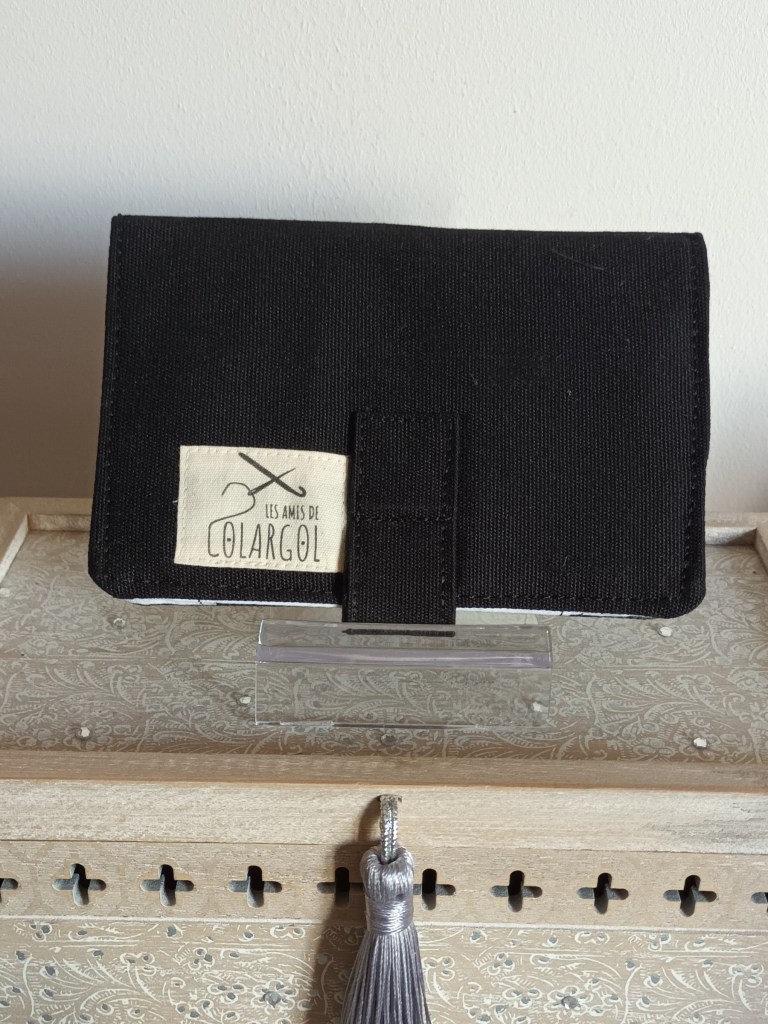 Extérieur: toile coton noire face intérieur enduite Intérieur: coton imprimé noir/blanc Pression métal argent